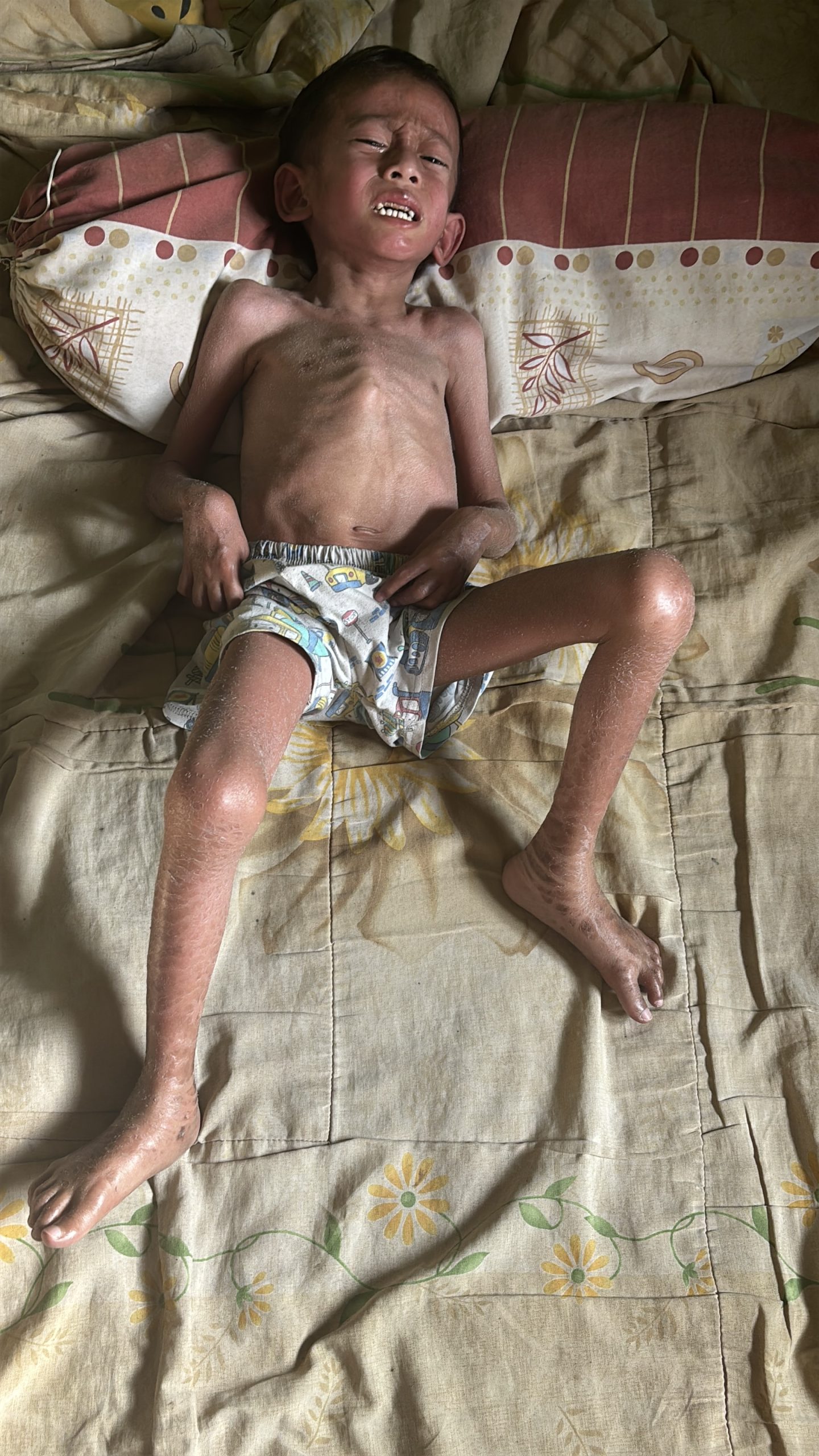 Putranya, Kurniawan Sopandi Putra (5 tahun), kini hanya lemah tak berdaya. Napasnya tersendat-sendat, hanya bergantung pada bantuan oksigen.